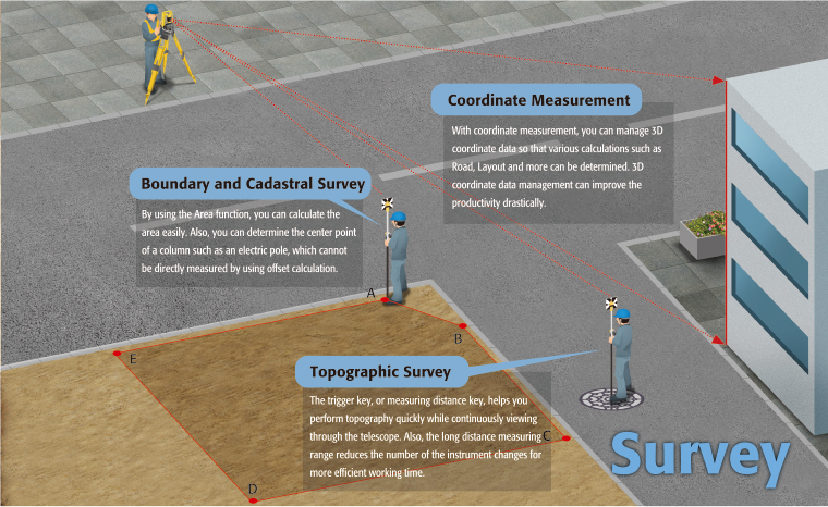 In addition, various tests against vibration, drop, temperature, and humidity were successfully passed to achieve the best environmental spec. Also, the measuring distance accuracy test on base line and the instrument leveling and angle accuracy test and adjustment by collimator system ensure your satisfaction on the GM Series product quality.