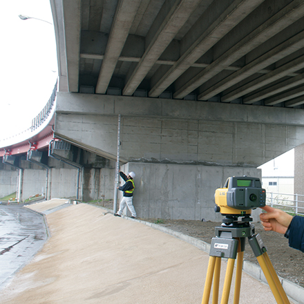 Cut and fill stakeout facilitates slope works. Measurement can be taken with 0.1mm or 1mm (0.001ft. or 0.01ft.) resolutions.